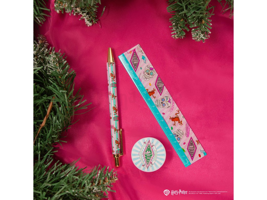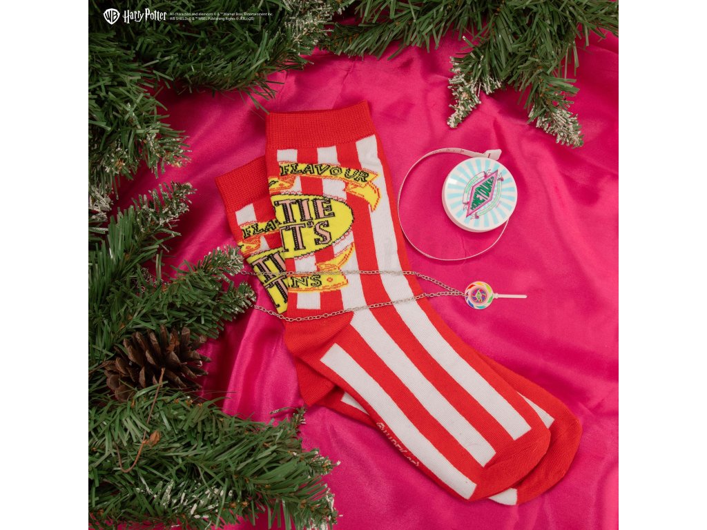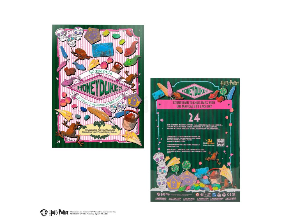 Zažijte kouzlo prosince s magickým adventním kalendářem od světa Harryho Pottera! Tento kalendář přináší 24 tematických překvapení — ponožky, přívěsky, náramky, záložky, dekorace a další drobnosti inspirované obchodem Medový ráj (Honeydukes).