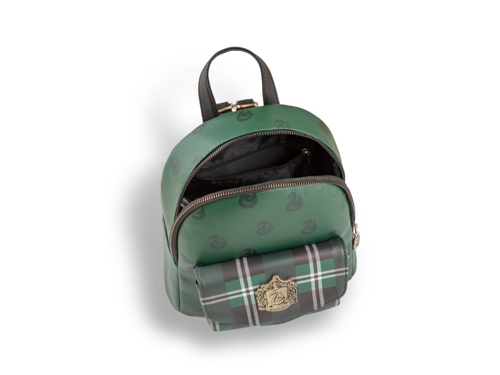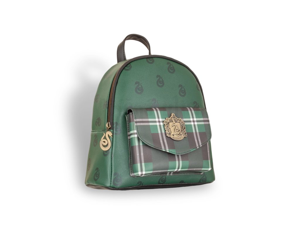 Tento prémiový mini batoh Harry Potter, kolej Zmijozel, je nezbytným doplňkem pro fanoušky všech věkových kategorií. Vyrobený z trošky kouzel a kvalitního polyuretanového materiálu, který zajišťuje dlouhotrvající barevnost a odolnost. Kovový odznak a detaily ve stylu starožitného bronzu dodávají batohu luxusní vzhled. Hlavní kapsa na zip, horní poutko pro nošení, nastavitelné ramenní popruhy.