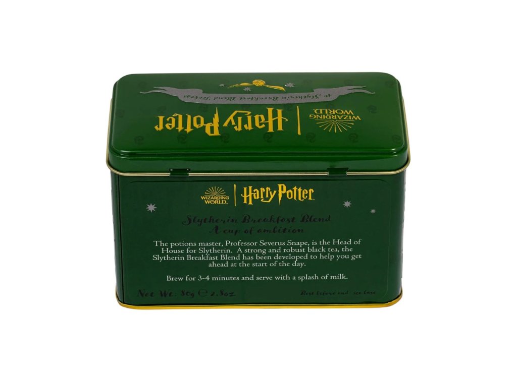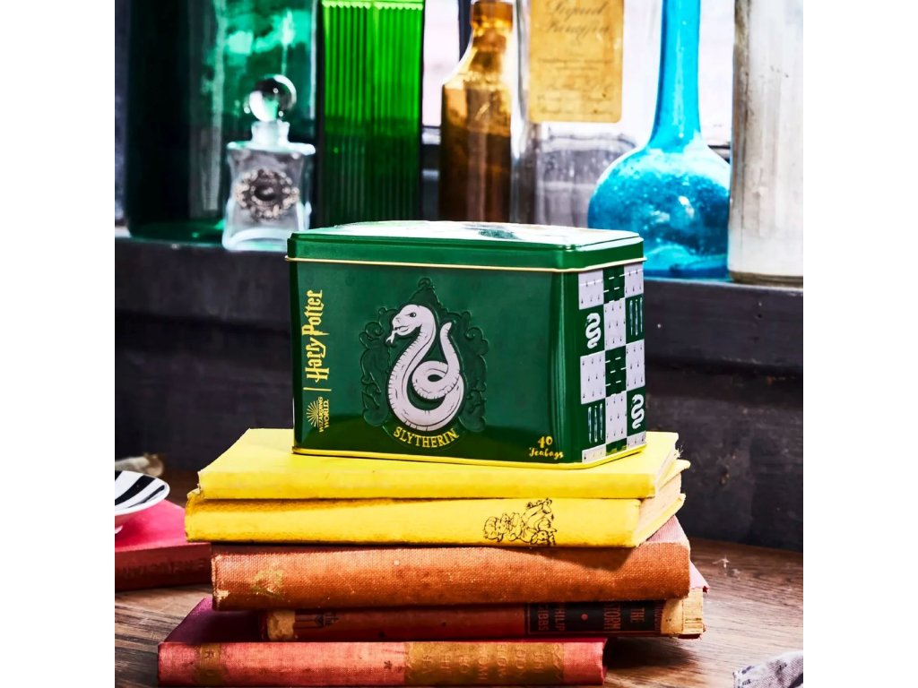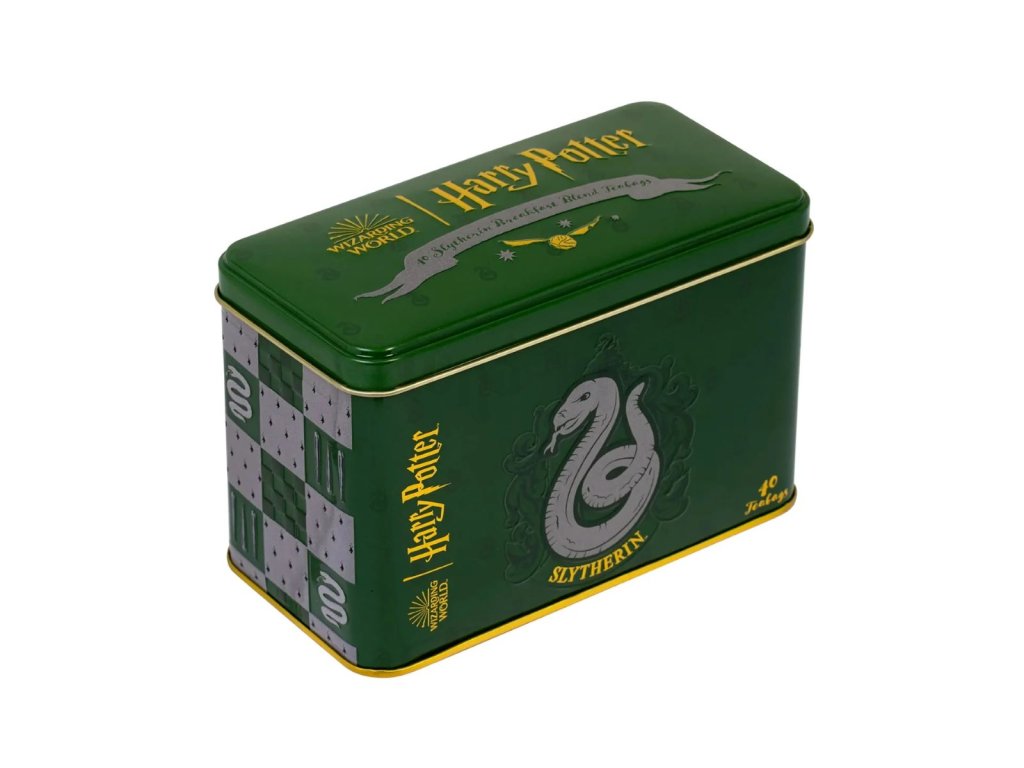 Voláme všechny čarodějky, čaroděje a mudly! Uvařte si šálek extra vychytralého čaje a vychutnejte si 40 porcí skvělého nápoje vytvořeného na počest Zmijozelské koleje. Díky zmijozelskému hadu, bude tato plechová krabička omračujícím dárkem pro přísznicve zmijozelské koleje. Netřeba kouzelnické hůlky - plechovka je opatřena odklápěcím víčkem, které se snadno otevírá a uchovává tak čaj čerstvý, vždy když potřebujete kouzelnou vzpruhu! Zažijte kouzlo Harryho Pottera™ s šálkem čaje.