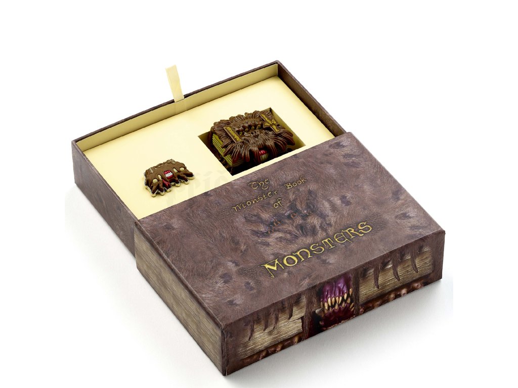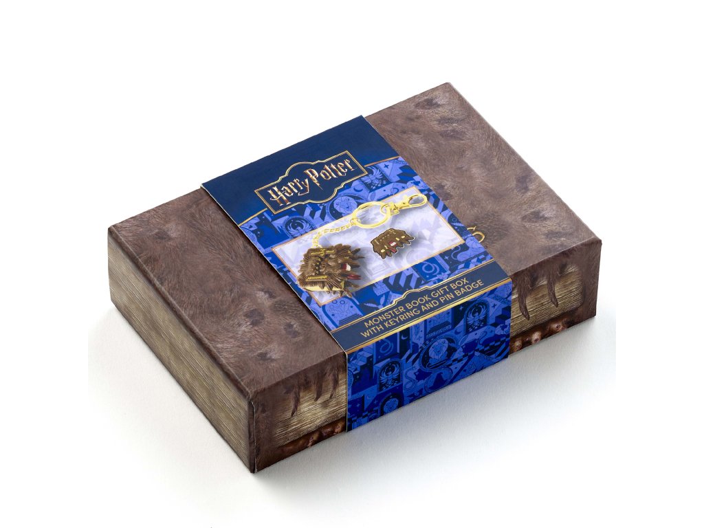 Kouzelná dárková krabička v designu knihy Obludné obludárium (Monster Book) s klíčenkou a odznakem uvnitř. Tuto úžasnou dárkovou krabičku můžete bezpečně otevřít, aniž byste se museli bát, že přijdete o prsty. Objevte další dárkové sady, které můžete sbírat v této úžasné kolekci krabiček.