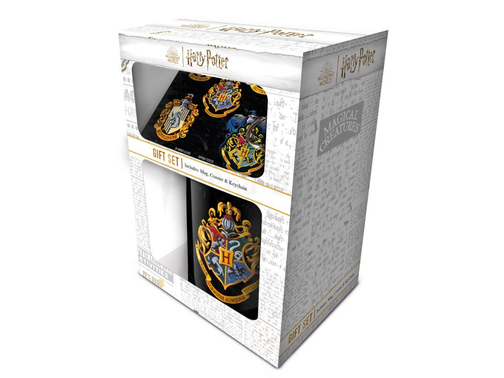 Dárkový set s logem školy kouzel v Bradavicích. Balení obsahuje keramický hrnek, korkový podtácek a gumovou klíčenku. Hrnek je vhodný do myčky nádobí a mikrovlnné trouby.