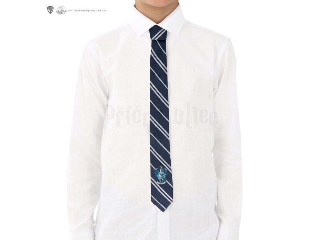 Dětská kravata Havraspár je vyrobena z jemného materiálu, který dodává textuře elegantní vzhled. Je zdobena pečlivě vyšívaným erbem této koleje, což z ní činí ideální doplněk pro fanoušky tohoto kouzelnického světa. Vhodná jako součást kostýmu i na každodenní nošení.