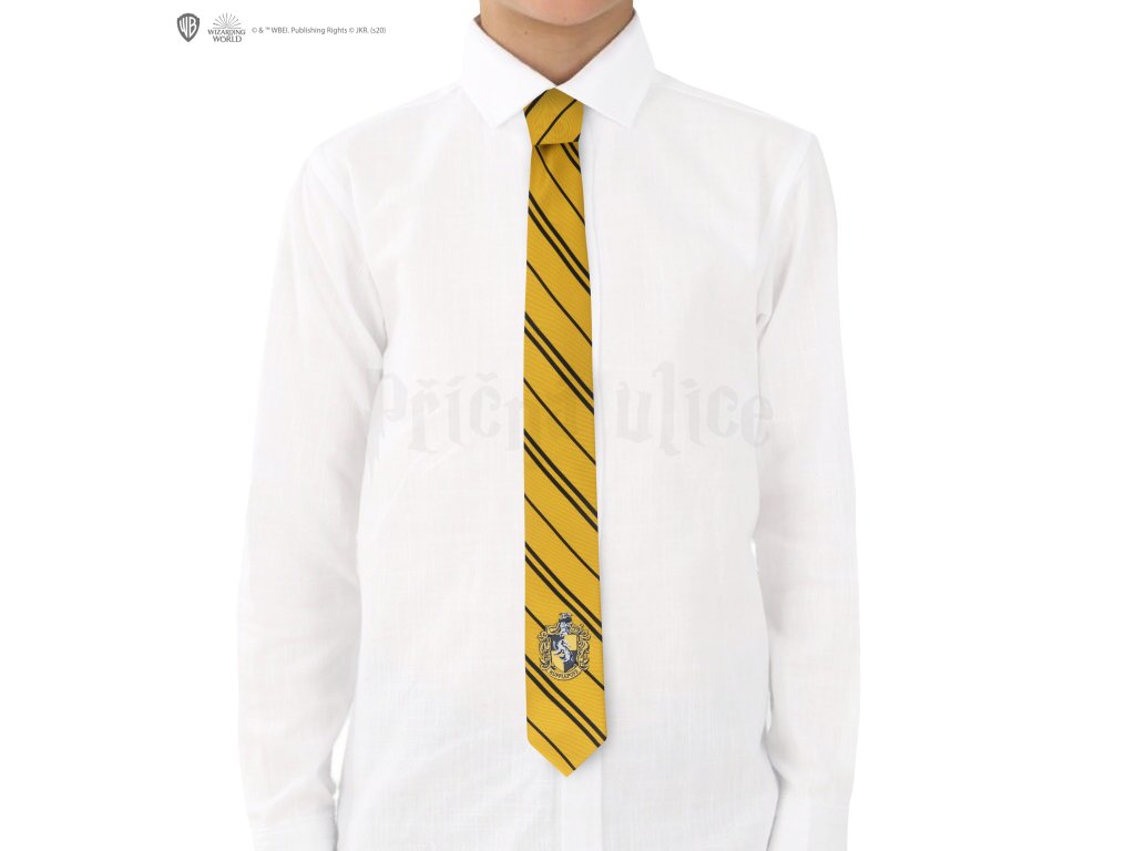 Dětská kravata Mrzimor je vyrobena z jemného materiálu, který dodává textuře elegantní vzhled. Je zdobena pečlivě vyšívaným erbem této koleje, což z ní činí ideální doplněk pro fanoušky tohoto kouzelnického světa. Vhodná jako součást kostýmu i na každodenní nošení.