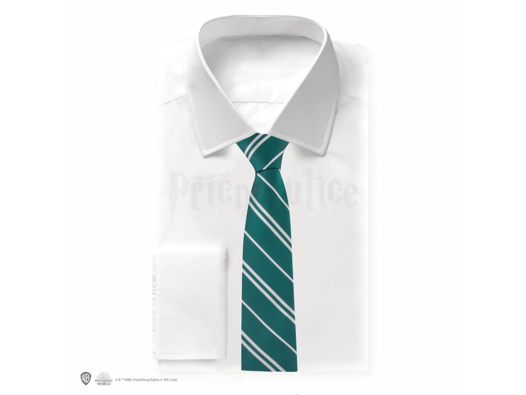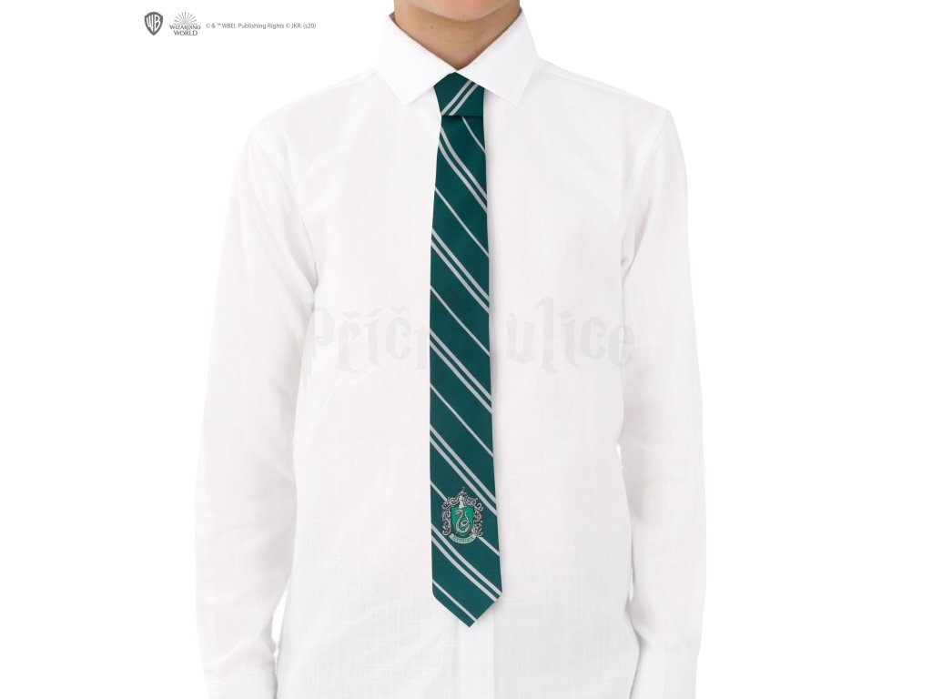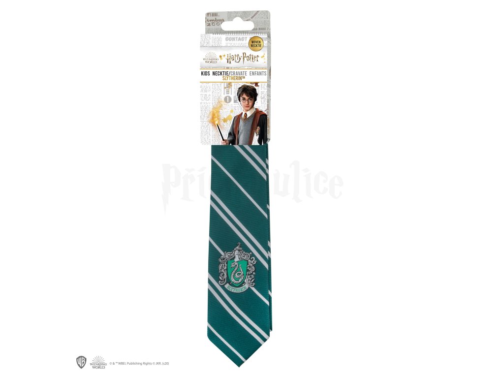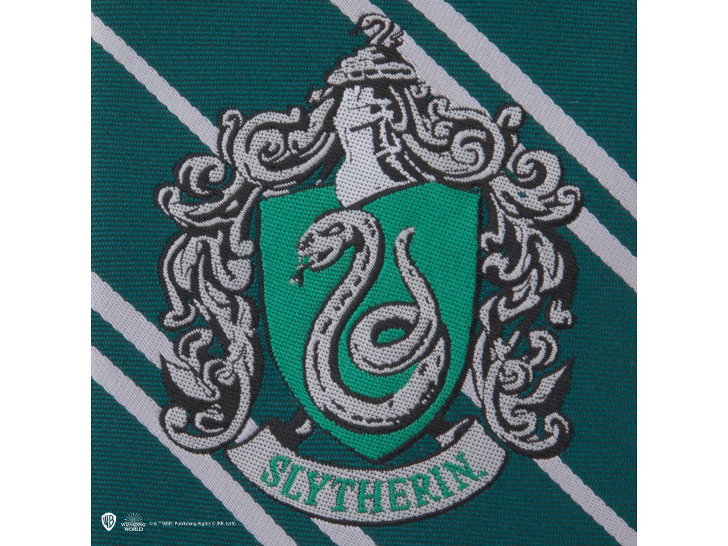 Dětská kravata Zmijozel je vyrobena z jemného materiálu, který dodává textuře elegantní vzhled. Je zdobena pečlivě vyšívaným erbem této koleje, činí ideální doplněk pro fanoušky tohoto kouzelnického světa. Vhodná jako součást kostýmu i na každodenní nošení.