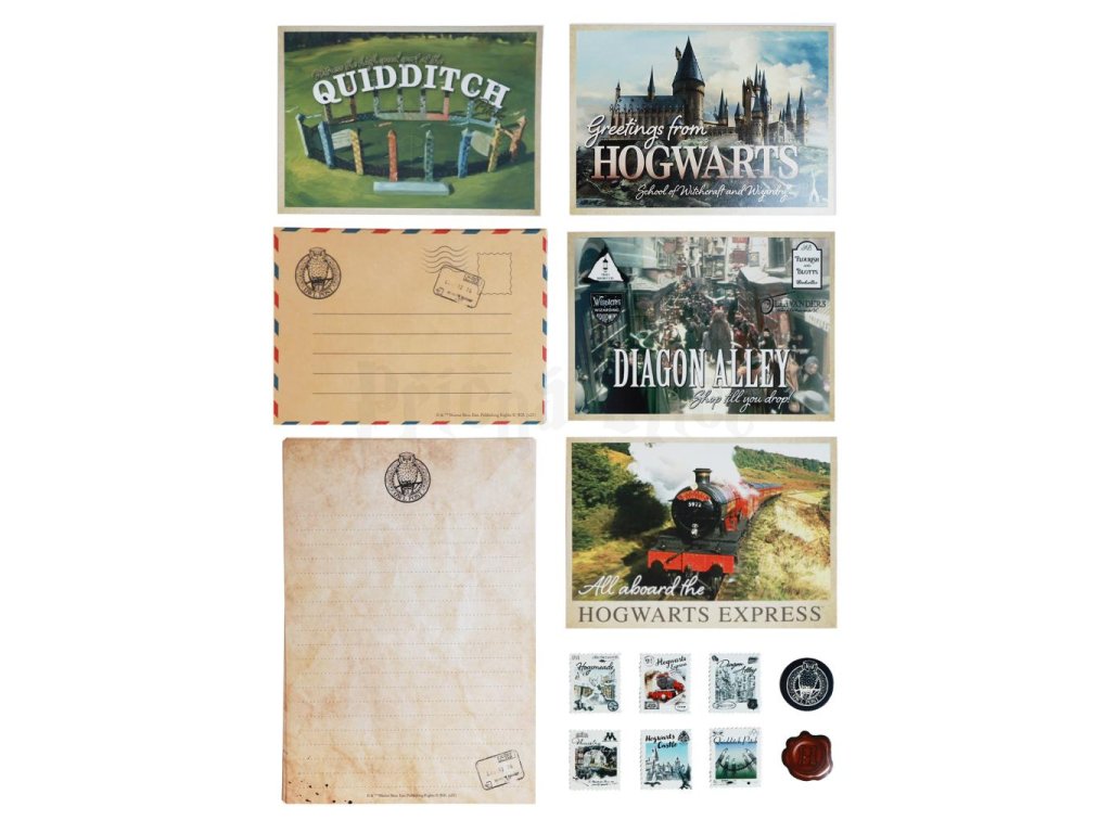 Vstupte do kouzelnického světa stylově s dopisní sadou Harry Potter, která promění každé psaní v magický zážitek. Tento sběratelský dopisní set je inspirován Bradavicemi a světem J. K. Rowlingové a obsahuje vše, co potřebujete ke kouzelnické korespondenci, přesně jako byste právě obdrželi dopis od profesora Brumbála. Dopisní set obsahuje 5 ks pozvánek, 5 ks dopisního papíru, set samolepek a pero v černé barvě.