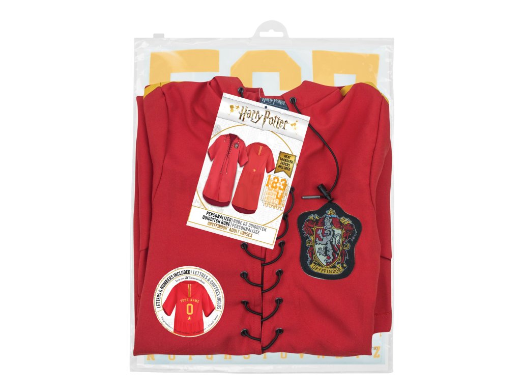 Vytvořte si svůj vlastní famfrpálový hábit s vlastním jménem a číslem a připojte se k nebelvírskému týmu! Hábit je měkký a pohodlný. Žádné kouzlo není nutné – stačí použít žehličku k přenesení přiložených písmen a čísel na hábit.