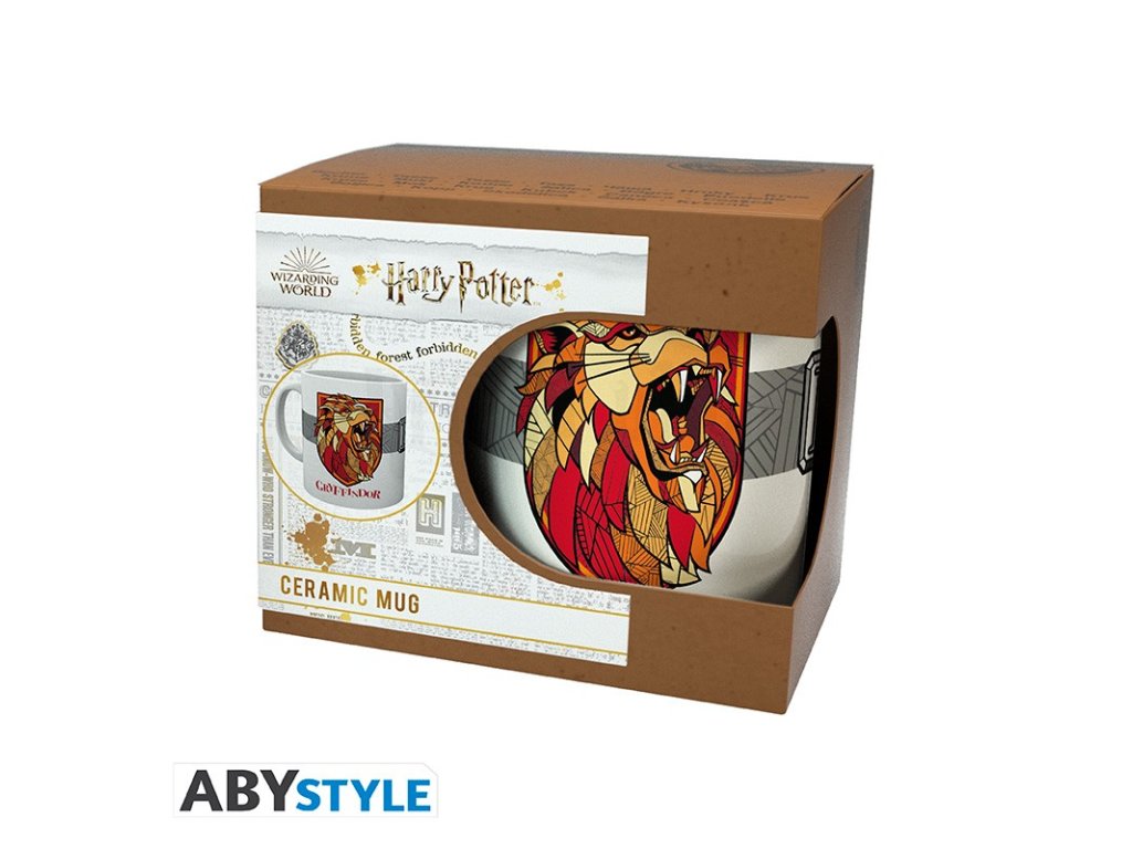 Kvalitní keramický hrnek v papírové krabičce - pěkné dárkové balení pro fanouška bradavické koleje Nebelvír.
