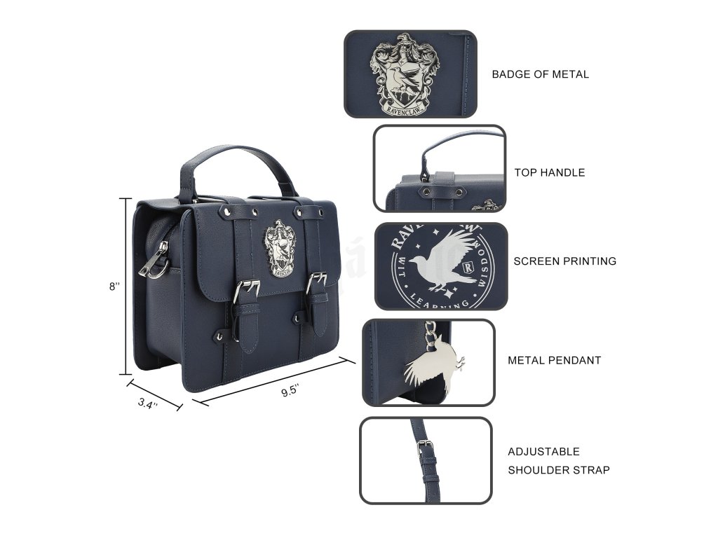 Tato kouzelná kabelka typu aktovka je nezbytností pro každého studenta Havraspáru. Díky okouzlujícím detailům a prostornému designu v ní najdete vše, co potřebujete k dobytí kouzelnického světa (nebo jen ke zvládnutí každodenních úkolů). Noste ji hrdě a ukažte svou kolejní hrdost! Klasický aktovkový design plný kouzla – a přívěsků! Navíc je pohodlná na nošení díky odnímatelnému popruhu a hornímu držadlu.