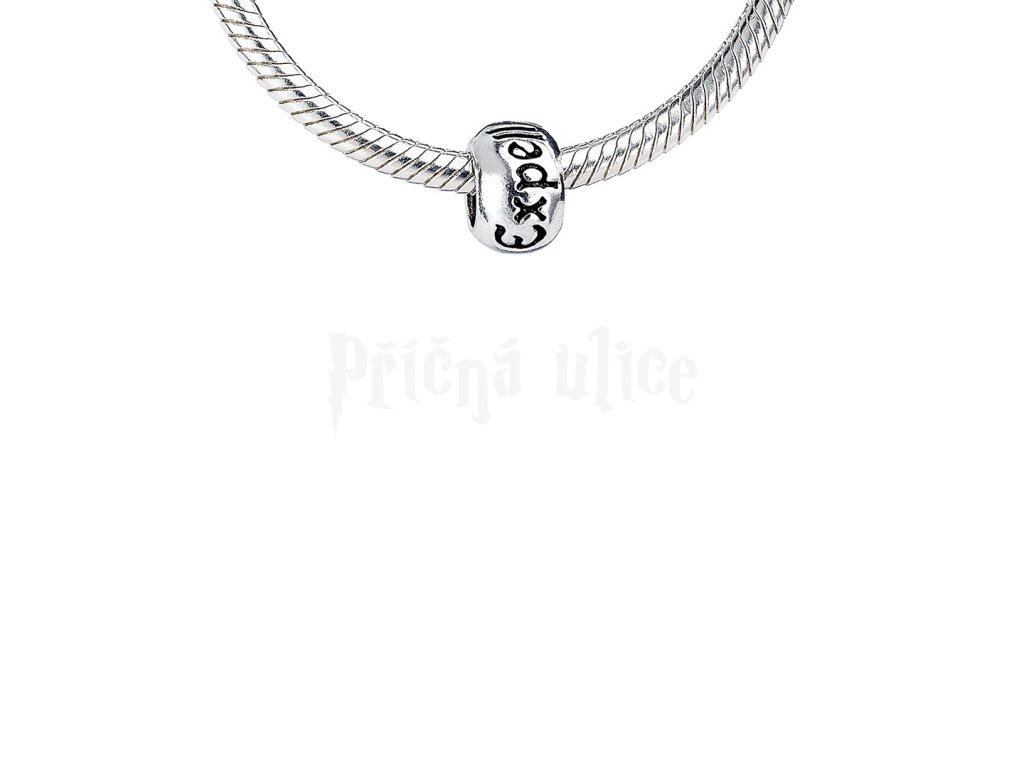 Tento stříbrný korálek se zaklínadlem „Expelliarmus“ z Harryho Pottera je ozdoben rytinou slavného odhazovacího kouzla, které nutí cílovou osobu pustit, co drží. Korálek můžete použít k oddělení a zvýraznění dalších přívěsků na svém náramku s motivy Harryho Pottera.