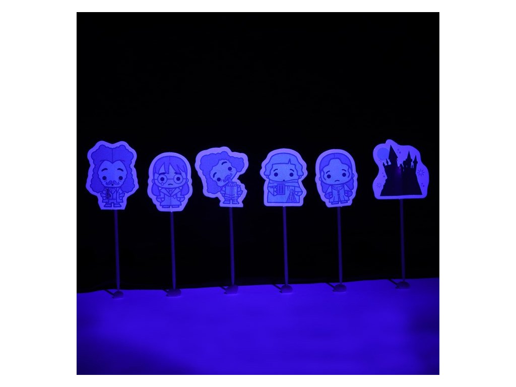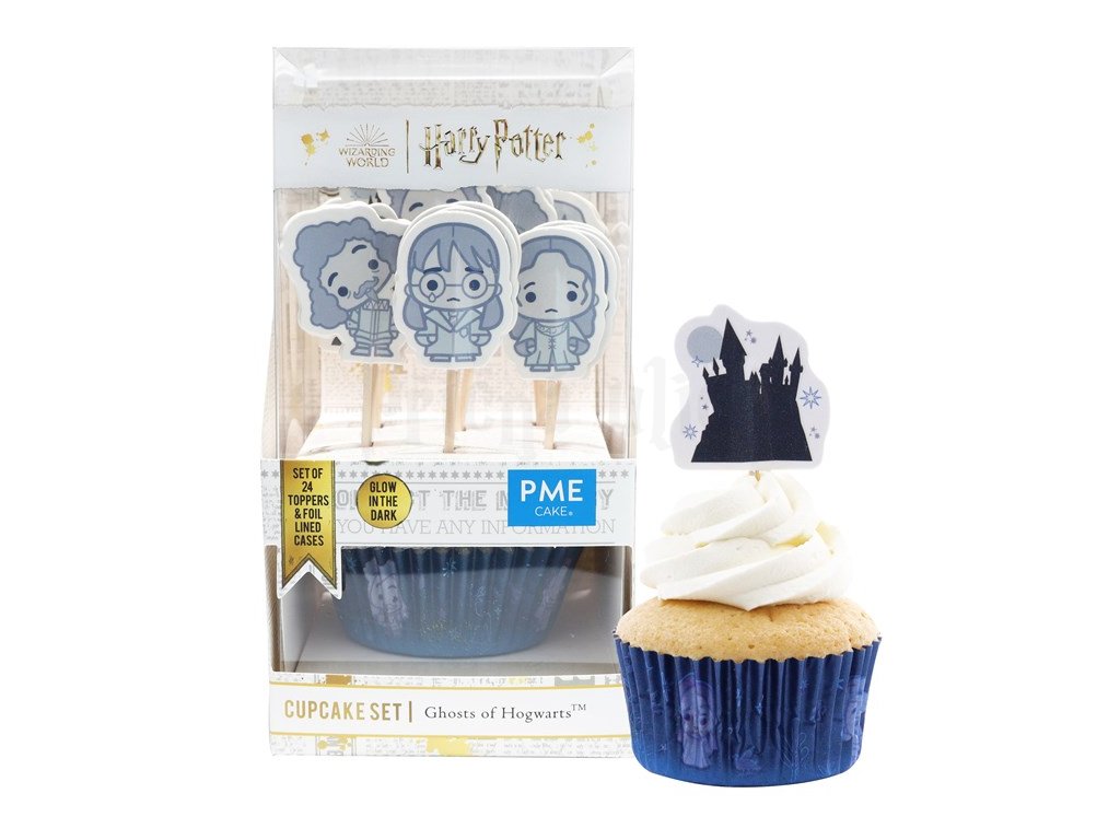 Tato sada košíčků na muffiny s ozdobami s motivy Duchů Bradavic obsahuje 24 oboustranných papírových ozdob na dřevěných tyčkách a 24 sladěných košíčků na muffiny se světélkujícími prvky. Ozdoby zahrnují 6 různých designů: Ufňukaná Myrta, Krvavý baron, Skoro bezhlavý Nick, Helena z Havraspáru, Tlustý mnich a silueta Bradavic.