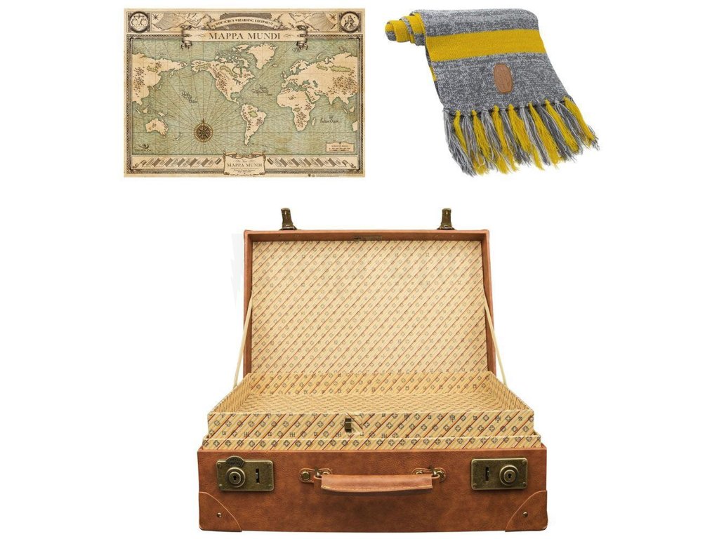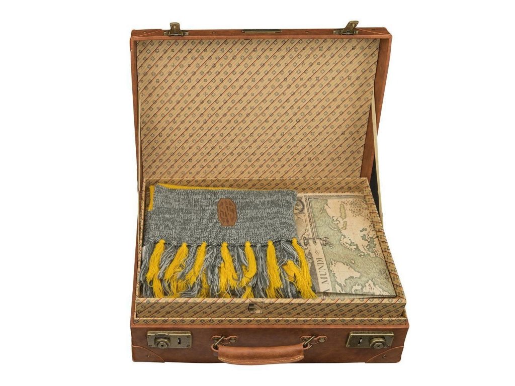Kufr je podšitý látkou s monogramem „N.S.“ (Newt Scamander) – detaily jako vystřižené přímo z filmu. Má kovové rohy a západky a dřevěnou strukturu. Uvnitř kufru najdete originální šálu s monogramem, mapu fantastických zvířat a funkční klíček.