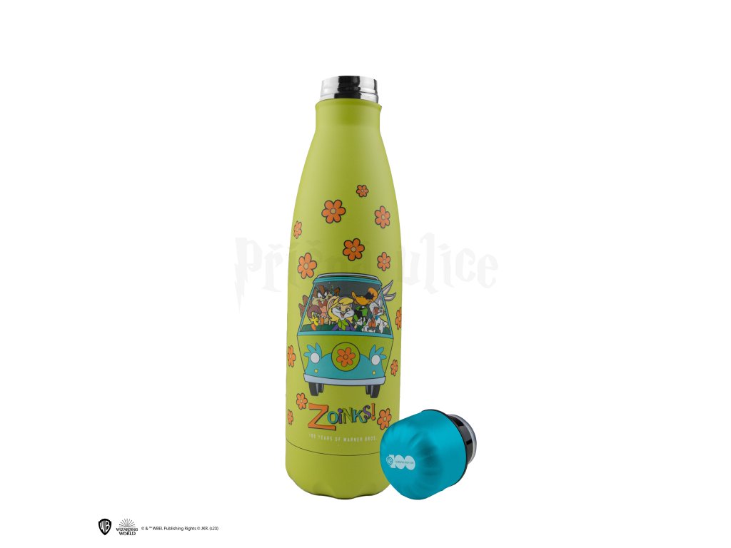 Při příležitosti 100. výročí studií Warner Bros objevte nové lahve na vodu. Tato láhev zobrazuje Bugs Bunnyho jako Freda Jonese, Tweetého jako Velmu Dinkley, Lolu Bunny jako Daphné Blake, Daffyho Ducka jako Shaggyho Rogerse a Taza jako Scooby-Doo! Do školy, do práce nebo kamkoli jinam si vezměte tuto láhev, která udrží váš nápoj studený nebo teplý po celé hodiny.