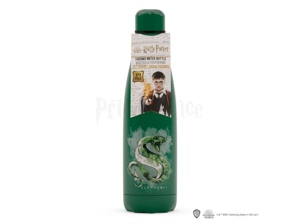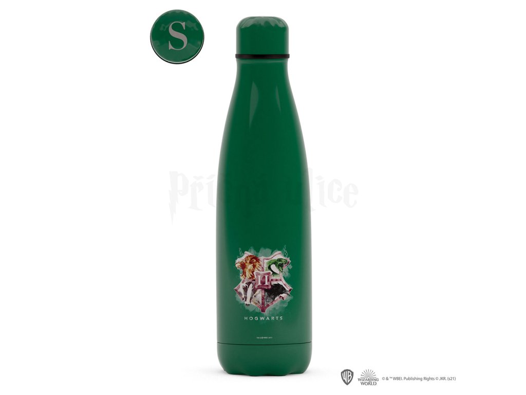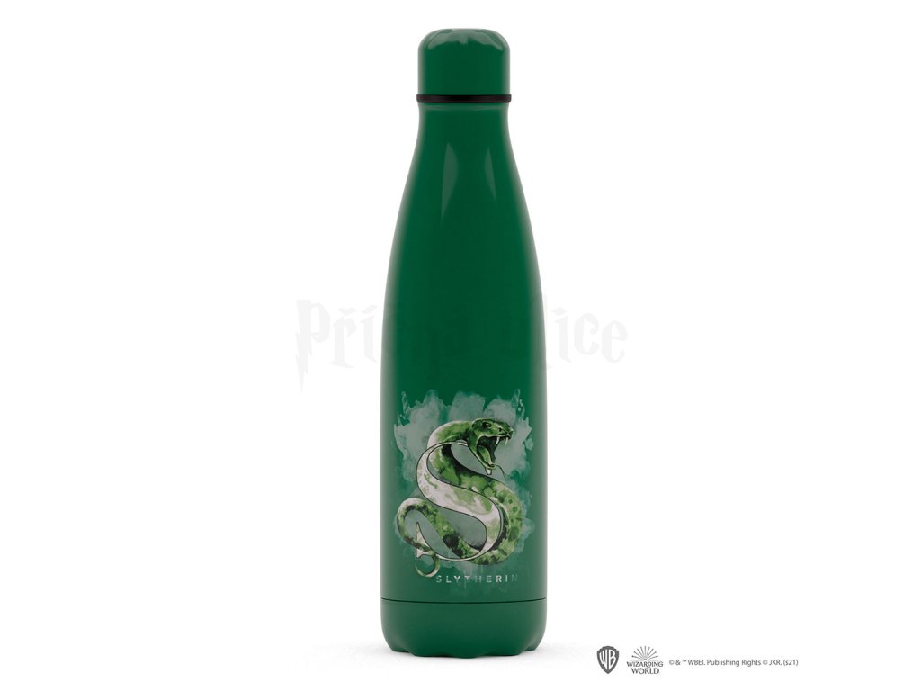 Láhev v barvách koleje Zmijozel. Tato láhev je vyrobena z nerezové oceli a udrží vaše nápoje studené nebo horké po dobu 15 hodin.