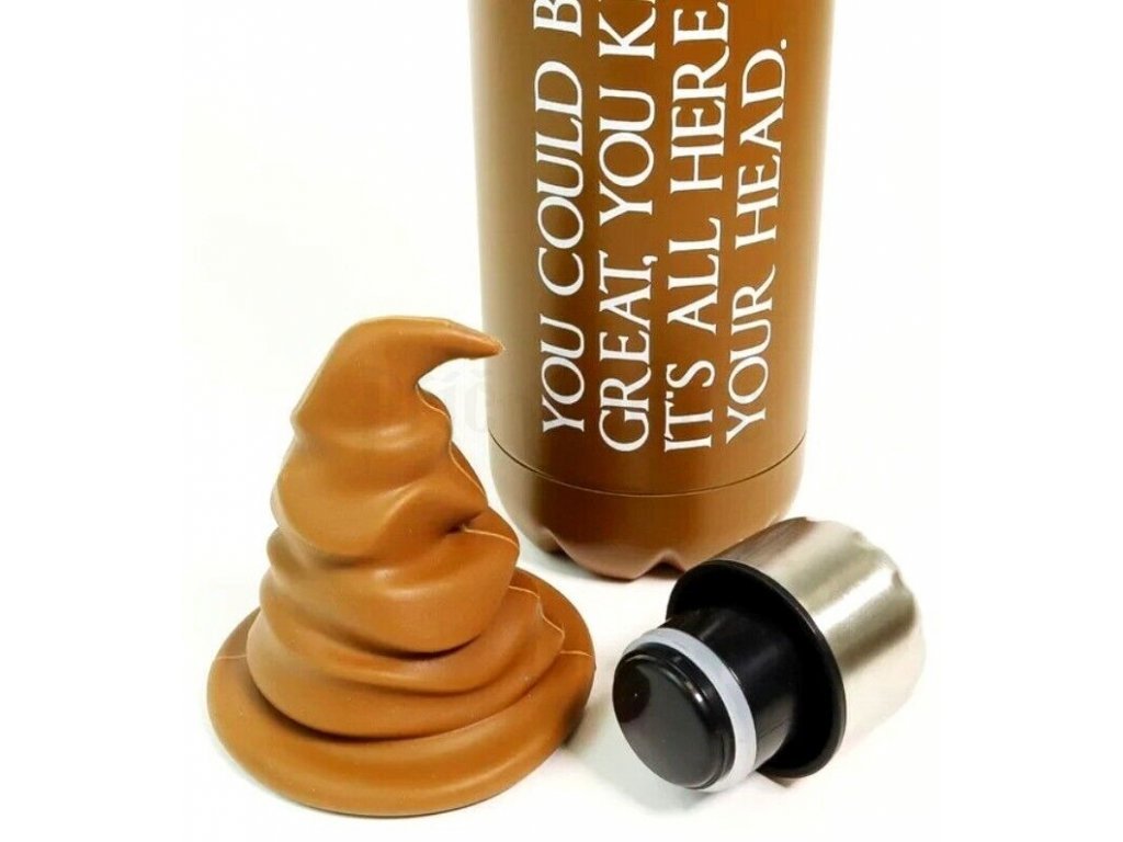 Atraktivní nerezová lahev na pití s víčkem, s Moudrým kloboukem, který rozděluje mladé čaroděje do školních kolejí.