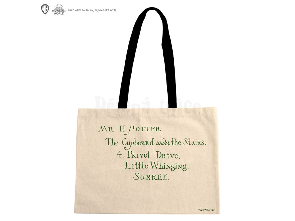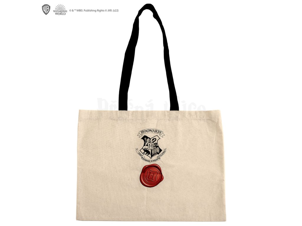 Bavlněná taška s dlouhými uchy a motivem dopisu z Bradavic.