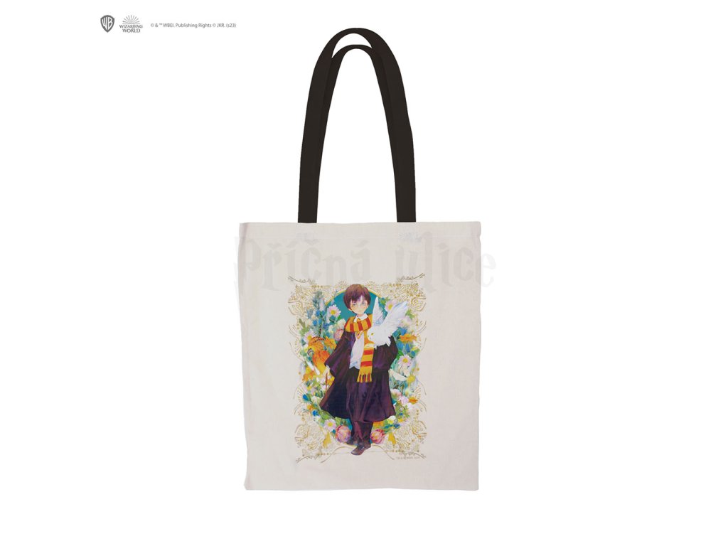 Bavlněná taška s dlouhými uchy a portrétem Harryho Pottera.