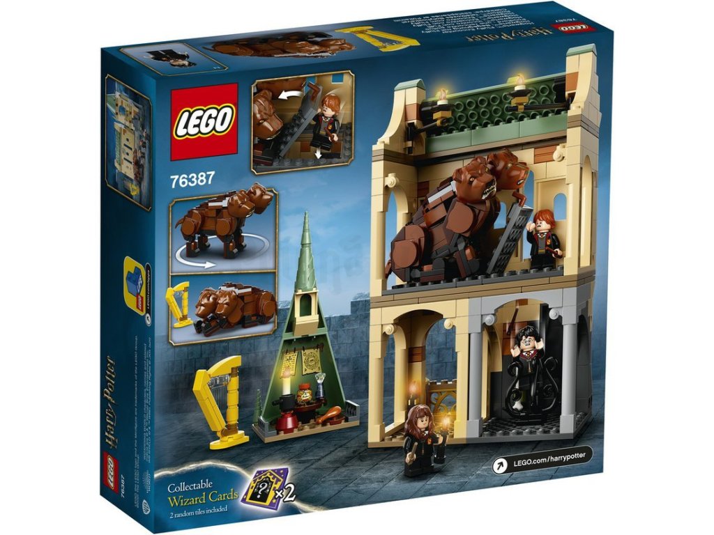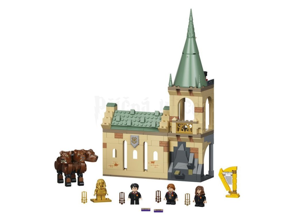 • Obsahuje minifigurky Harryho Pottera, Hermiony Grangerové a Rona Weasleyho, velkého sestavitelného tříhlavého psa, 5 sestavitelných modulů a autentické doplňky, včetně kouzelné harfy.