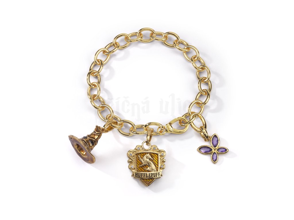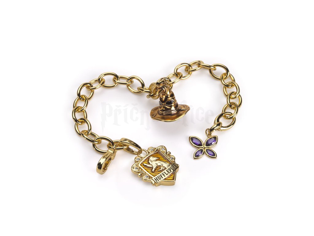 Tento speciální náramek se zlatým pokovem obsahuje tři exkluzivní přívěsky: erb koleje Mrzimor, Moudrý klobouk a logo nadace Lumos. Délka náramku je přibližně 21 cm.