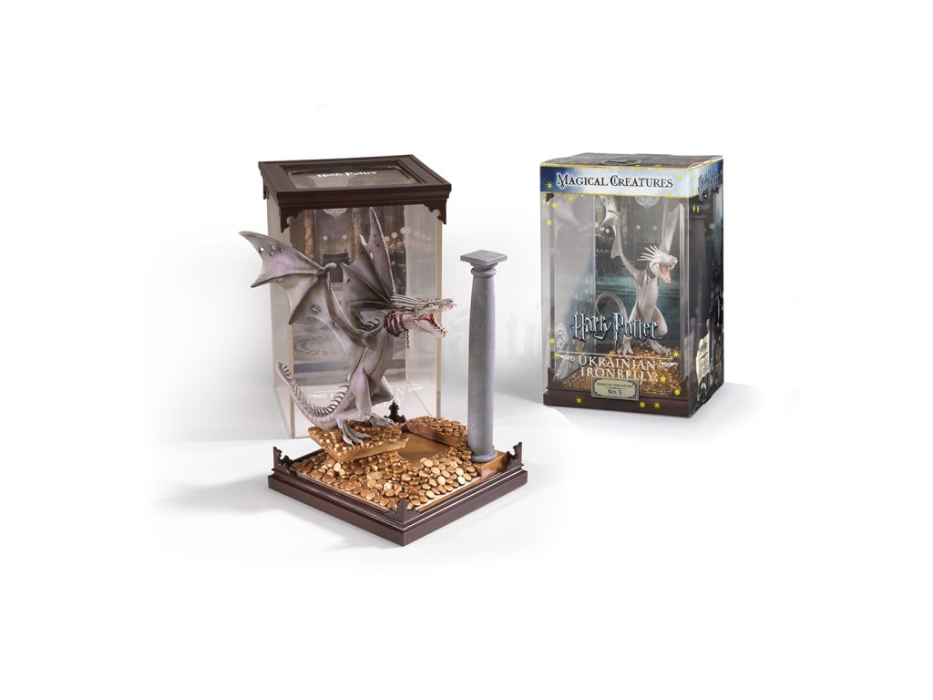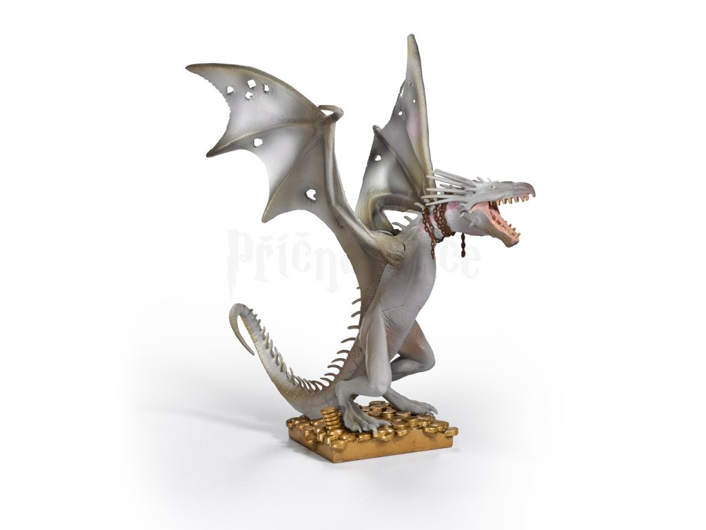 Ručně malované diorama ukazující ukrajinského železnobřichého draka, největší druh draka, s obrovským rozpětím křídel a drápy pevnými jako ocel. Tento drak hlídal zlato ve trezorech Gringottovy banky ve filmové sérii Harry Potter. Rozměr: 18,5 x 10,5 x 10,5 cm