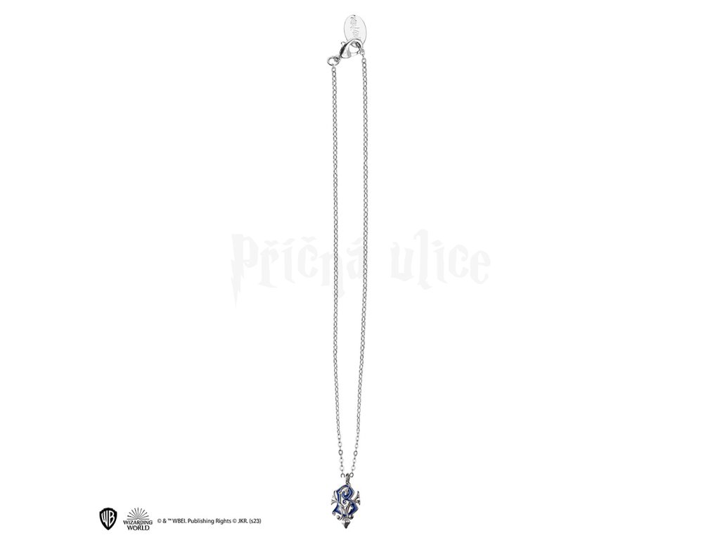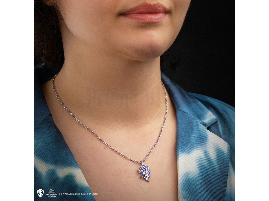 Náhrdelník Krásnohůlek má úžasný železný řetízek, který jemně obepíná krk a dodá každému oblečení nádech sofistikovanosti. Středobodem tohoto okouzlujícího náhrdelníku je nádherné modrý znak francouzské kouzelnické školy Krásnohůlek.