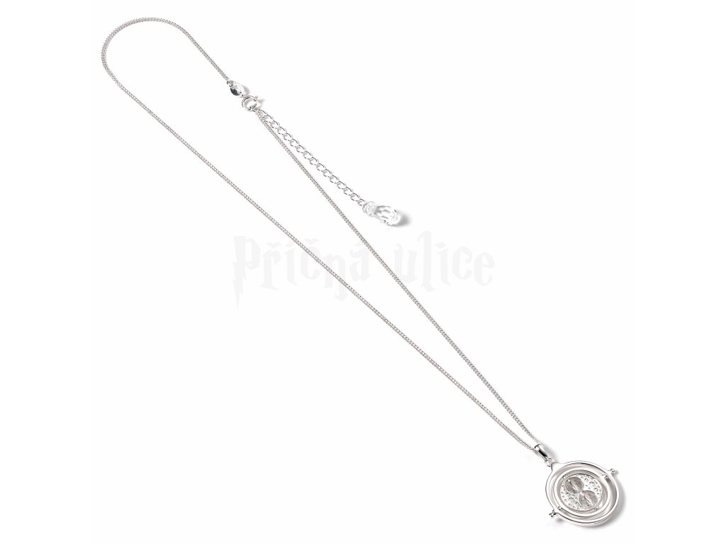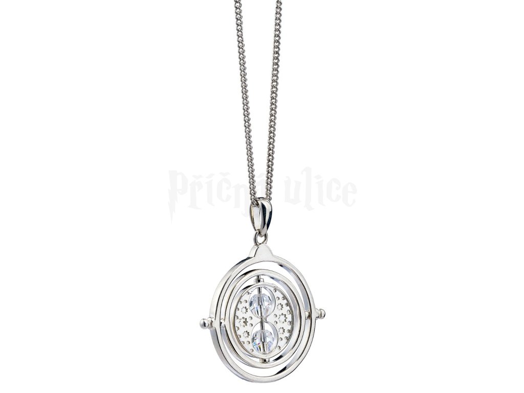 Tento nádherný náhrdelník, vyrobený podle Obraceče času z Vězně z Azkabanu, který vlastnila Hermiona Grangerová, je vyroben z masivního sterlingového stříbra a zdoben třpytivými krystaly. Dodává se v krabičce s leštícím hadříkem. Vhodný od 14 let.