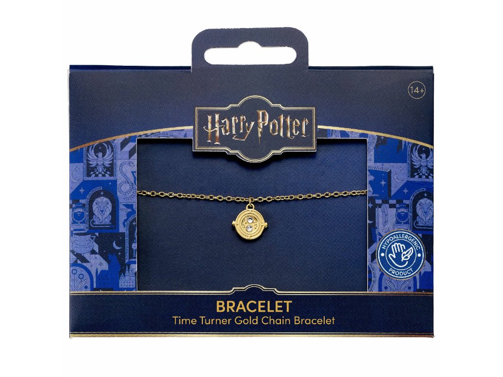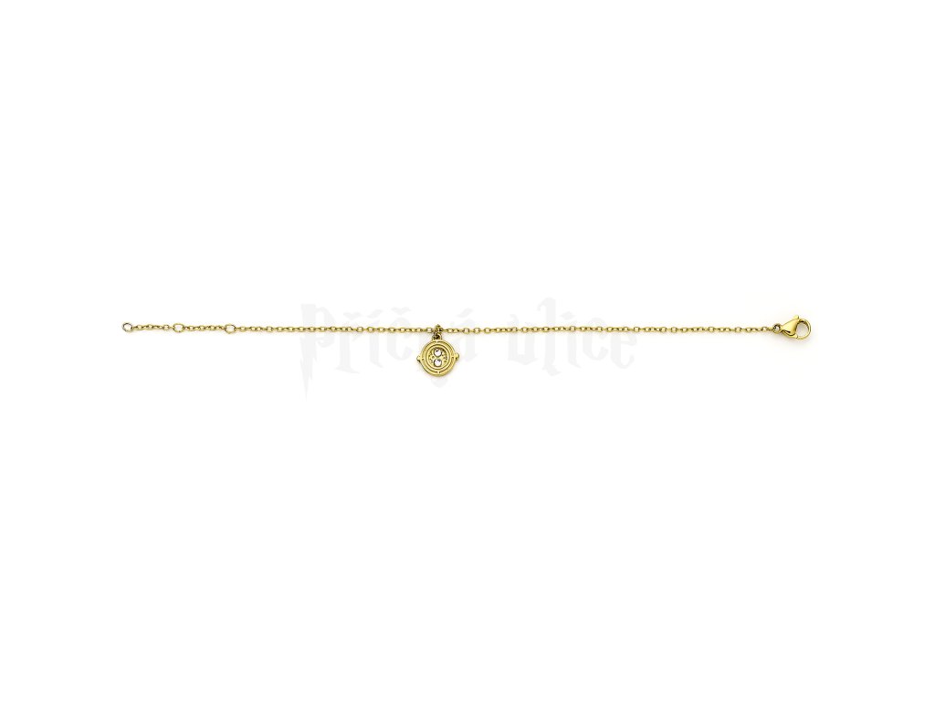 Řetízkový náramek z nerezové oceli ve zlaté barvě, inspirovaný kouzelnickým světem Harryho Pottera. Na řetízku visí ikonický symbol obraceče času a lze jej nastavit tak, aby odpovídal obvodu zápěstí 16-18 cm. Náramek je vyroben z nerezové oceli, je hypoalergenní a vhodný pro všechny typy pleti. Díky PVD povlaku je náramek odolný a odolný proti opotřebení. Dodává se v roztomilém balení ve tvaru obálky, což z něj dělá fantastický dárek. Vhodný od 14 let.
