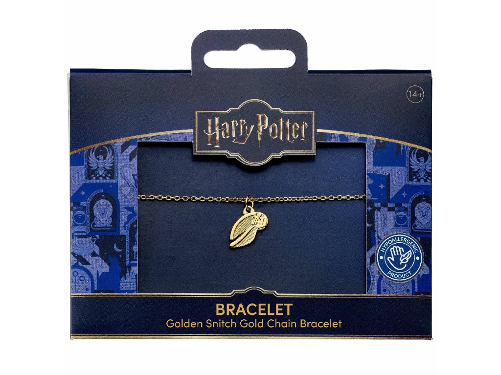 Dodá vaší sbírce šperků nádech magie s tímto zlatým řetízkovým náramkem, inspirovaným kouzelnickým světem Harryho Pottera. Tento doplněk z nerezové oceli s ikonickým symbolem Zlatonky a nastavitelným obvodem zápěstí 16-18 cm je hypoalergenní a vhodný pro všechny typy pleti. PVD povlak náramku činí odolným a odolným proti opotřebení. Navíc je dodáván v roztomilém balení ve tvaru obálky, takže je skvělým dárkem. Vhodný od 14 let.
