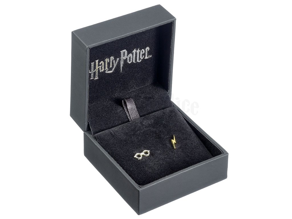 Sada dvou stříbrných náušnic ve tvaru ikonických brýlí Harryho Pottera a jeho bleskové jizvy potěší každého fanouška kouzelnického světa. Náušnice jsou baleny v elegantní dárkové krabičce, takže se skvěle hodí i jako originální dárek.