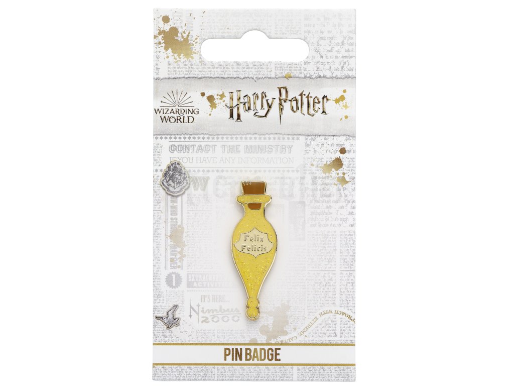 Kouzlo Felix Felicis je známé jako Tekuté štěstí a může přinést štěstí a úspěch tomu, kdo ho vypije! Ale pozor, neužívejte příliš mnoho! Připněte si ho na oblečení, tašky, klobouky nebo si ho jednoduše přidejte do sbírky. Pozlacená slitina se smaltovaným detailem. Vhodný od 14 let.