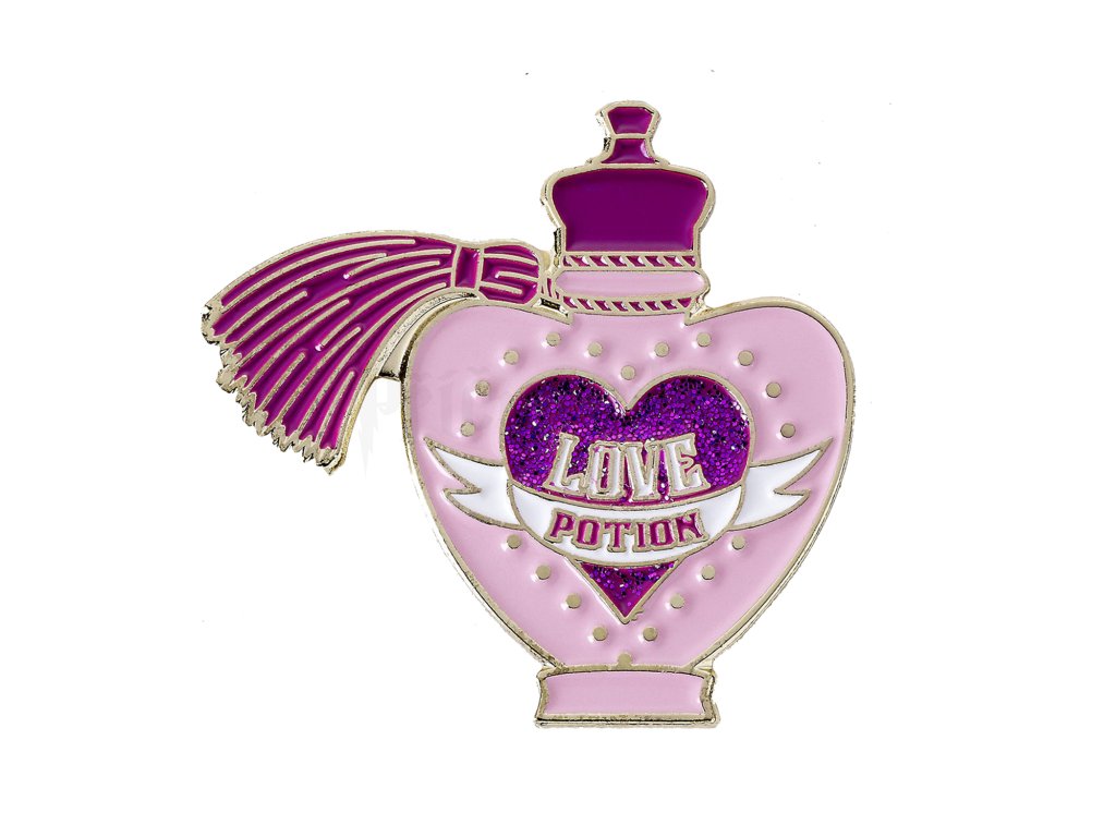 Budete posedlí. nebo okouzleni osobou, která vám dala ochutnat nápoje lásky. Uvědomte si, že je v Bradavicích zakázaný, budete si ho muset propašovat, pokud si ho chcete vzít! Připněte si ho na oblečení, tašky, klobouky nebo si ho jednoduše přidejte do sbírky. Pozlacená slitina se smaltovaným detailem. Vhodný od 14 let.