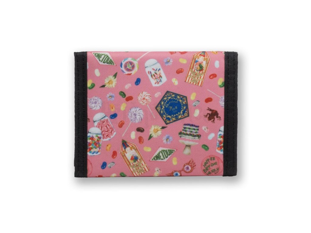 Vstup do vesničky Prasinek stylově s touto růžovou peněženkou s motivem Honeydukes a lebkami! Má zapínání na suchý zip pro bezpečné zavření, vnitřní kapsu na zip na mince a praktickou přihrádku na karty.