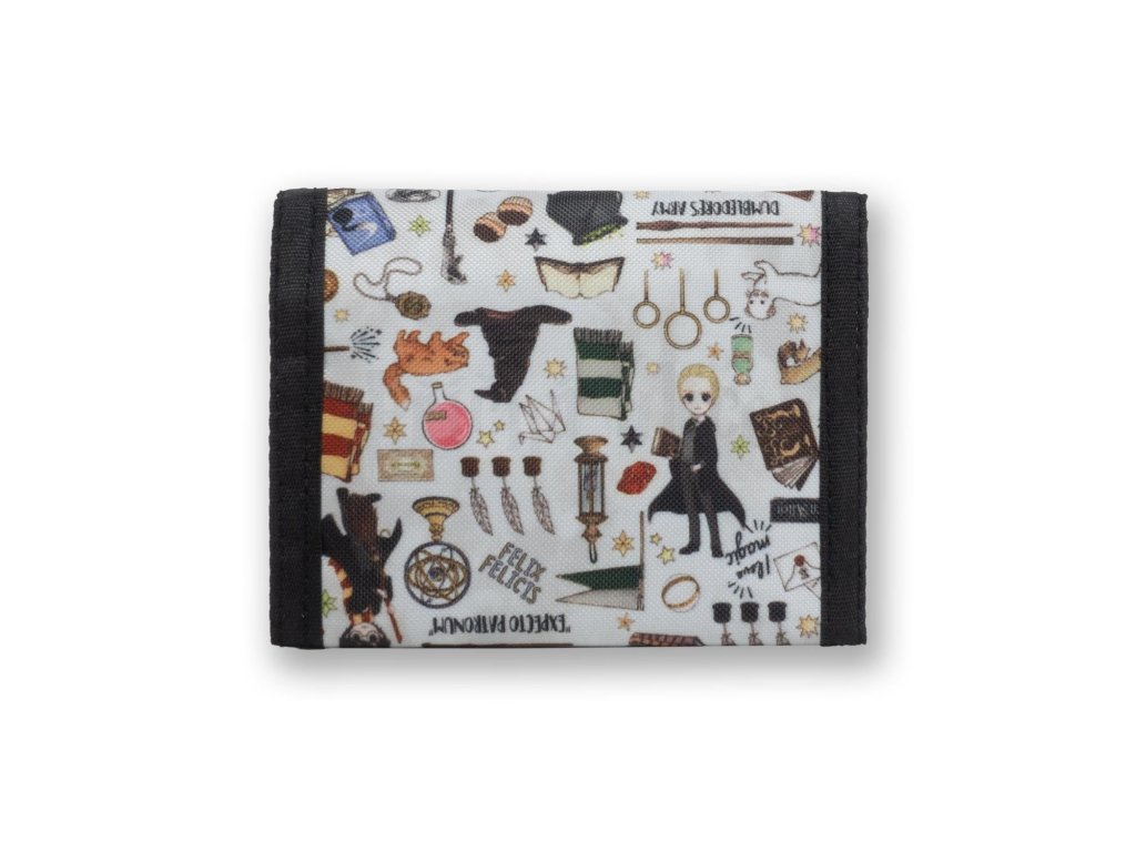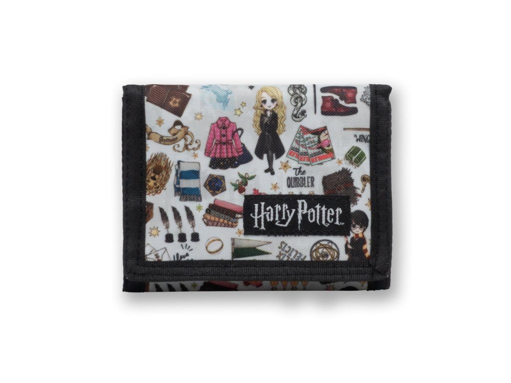 Mějte své mince a karty pěkně pohromadě s touto magickou peněženkou s motivem Harryho Pottera, Lenky Láskorádové a předmětů s ní spojenými. Má zapínání na suchý zip, kapsičku na mince se zipem, přihrádky na karty.