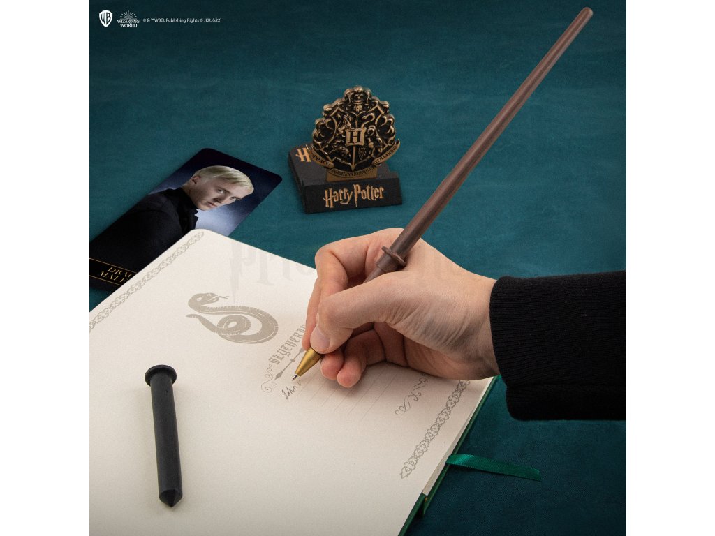 Pero připomínající hůlku není jen replikou z Harryho Pottera, ale také plnohodnotným perem vhodným pro běžné psaní. Toto pero je vybaveno vlastním stojánkem a záložkou označenou jménem majitele hůlky, která vám pomůže sledovat přečtené stránky.