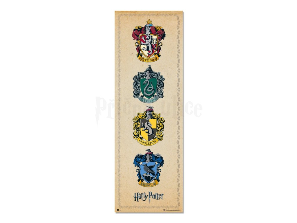 Tento působivý plakát o rozměrech 53 x 158 cm zobrazuje erby ze školy čar a kouzel v Bradavicích. Ideální pro ozdobení vašich dveří a přidání kozelnické atmosféry do vašeho pokoje či jiného prostoru.