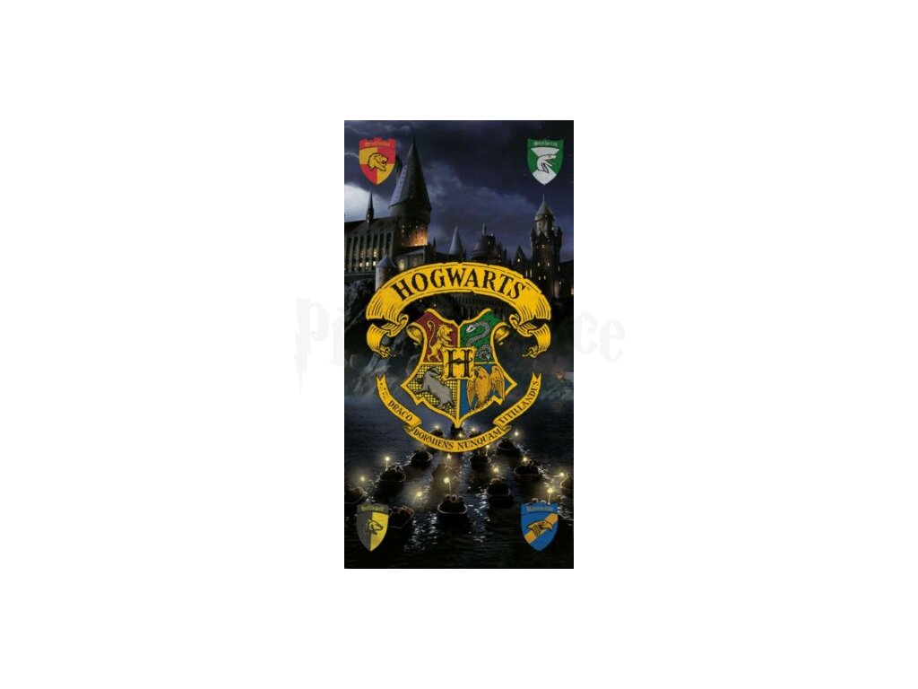 Froté plážová osuška Harry Potter. Zdobí ji velký erb s nápisem Hogwarts, v pozadí s bradavickým hradem, kde sídlí škola čar a kouzel. Je ideální nejen doma do koupelny, ale hodí se i na pláž, nebo k bazénu.