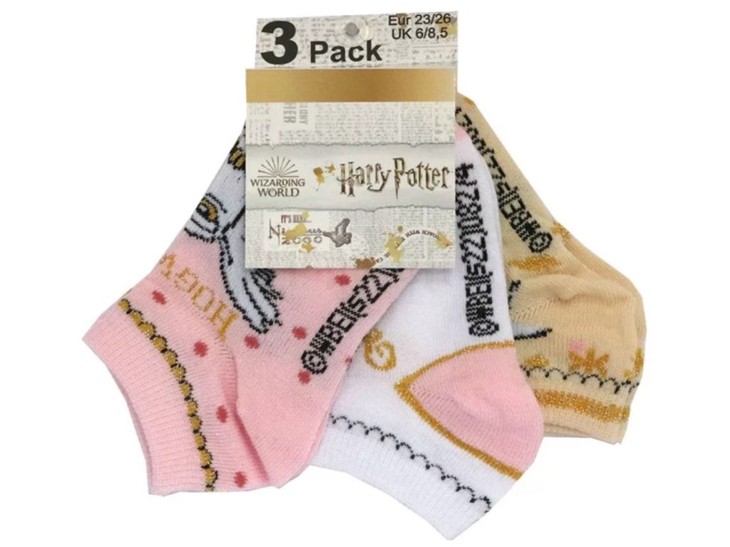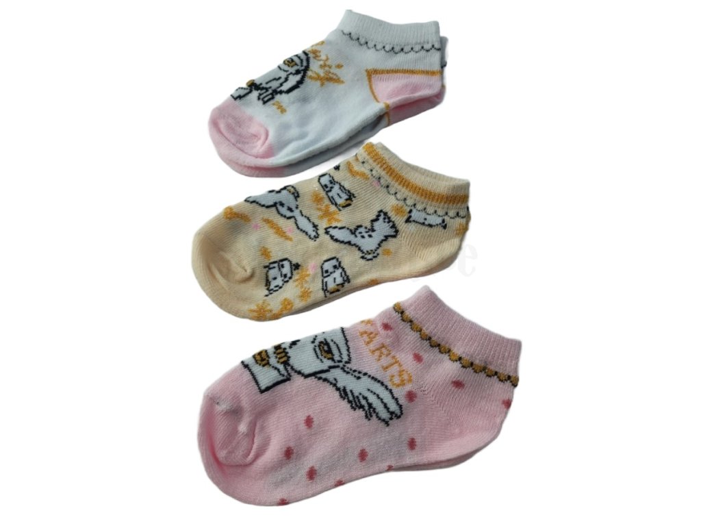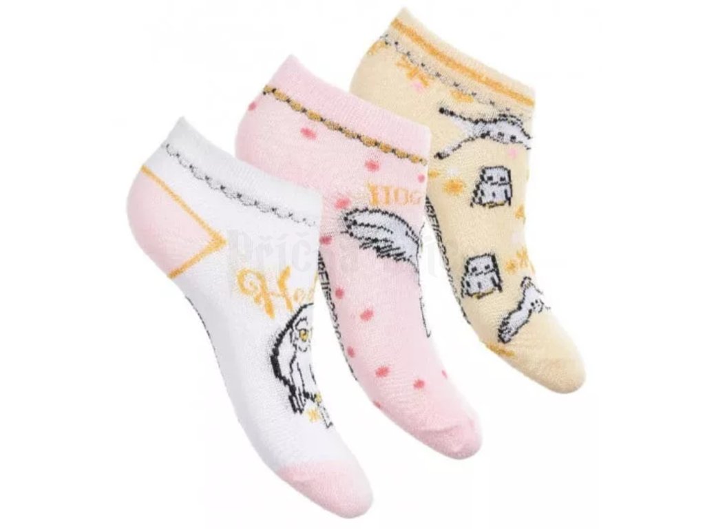 Ponožky dětské kotníkové, 3 ks růžové s Hedvikou, Harry Potter