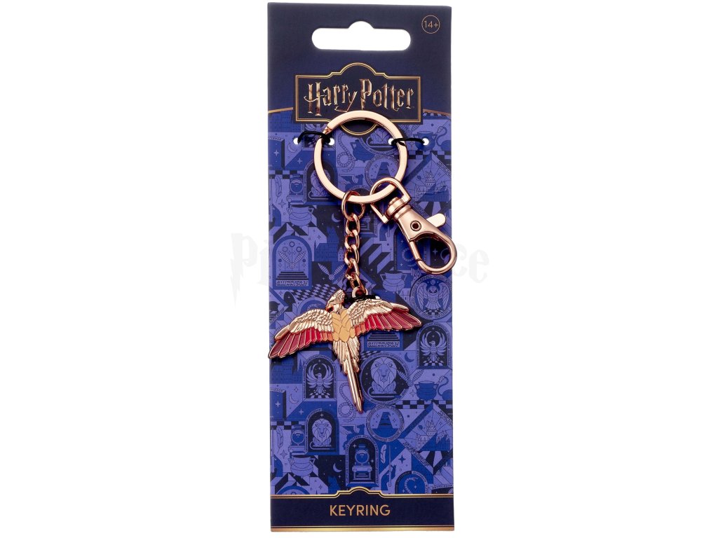 Fénix je nejoblíbenější pták Albuse Brumbála. Říká se, že dvě z jeho ocasních per jsou obsažena v hůlkách Harryho a Voldemorta! Klíčenka je vyrobena ze slitiny pokovené růžovým zlatem s barevnými detaily. Fénix je přibližně 4 cm dlouhý a 5 cm široký. Celková délka klíčenky je 13 cm. K dispozici je také odpovídající odznak a náhrdelník. Vhodné od 14 let.