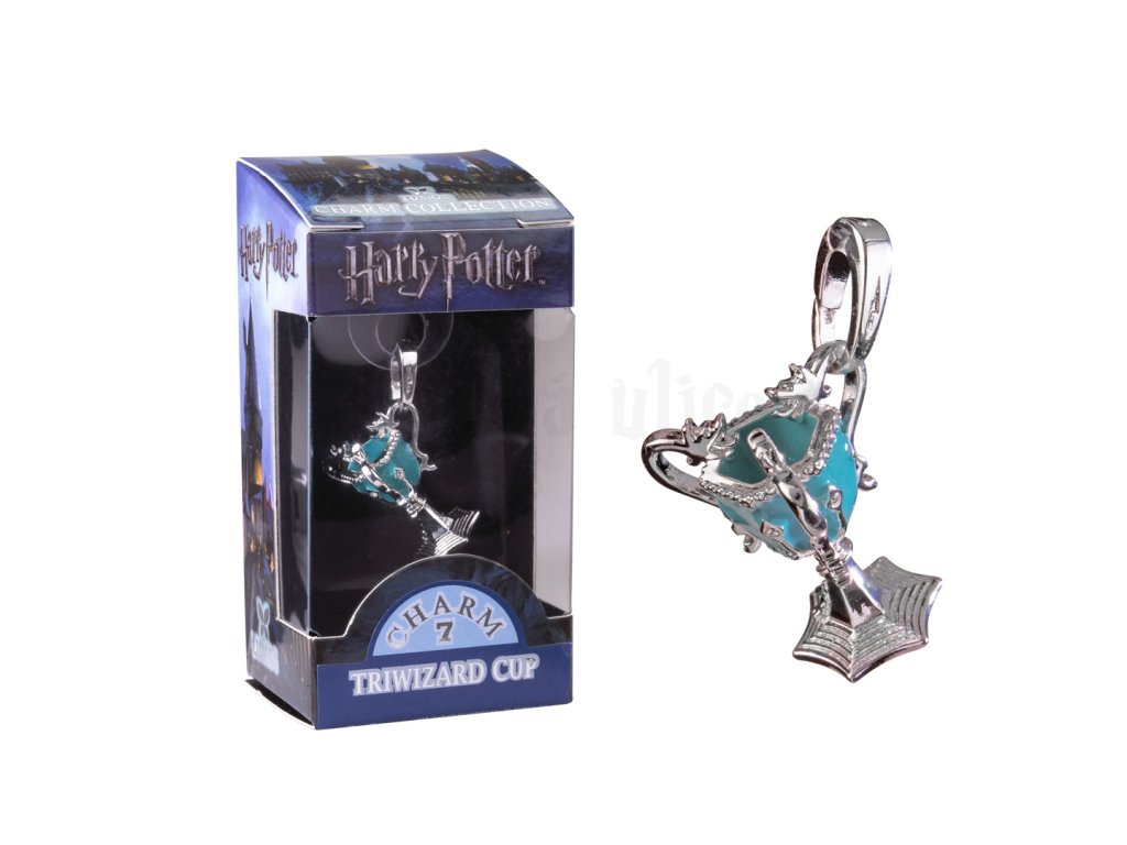 Doplňte svůj náramek Lumos tímto přívěskem ve tvaru Poháru tří kouzelníků, jaký je vidět ve filmu Harry Potter a Ohnivý pohár (2005). Tento všestranný přívěsek je postříbřený a smaltovaný s karabinkou a lze jej připevnit k našim náramkům Lumos s přívěsky Harry Potter nebo k vašemu vlastnímu náhrdelníku či náramku. Přívěsky měří přibližně 2–3 cm. Spona měří přibližně 4 mm napříč a 9 mm podél vnitřního průměru.