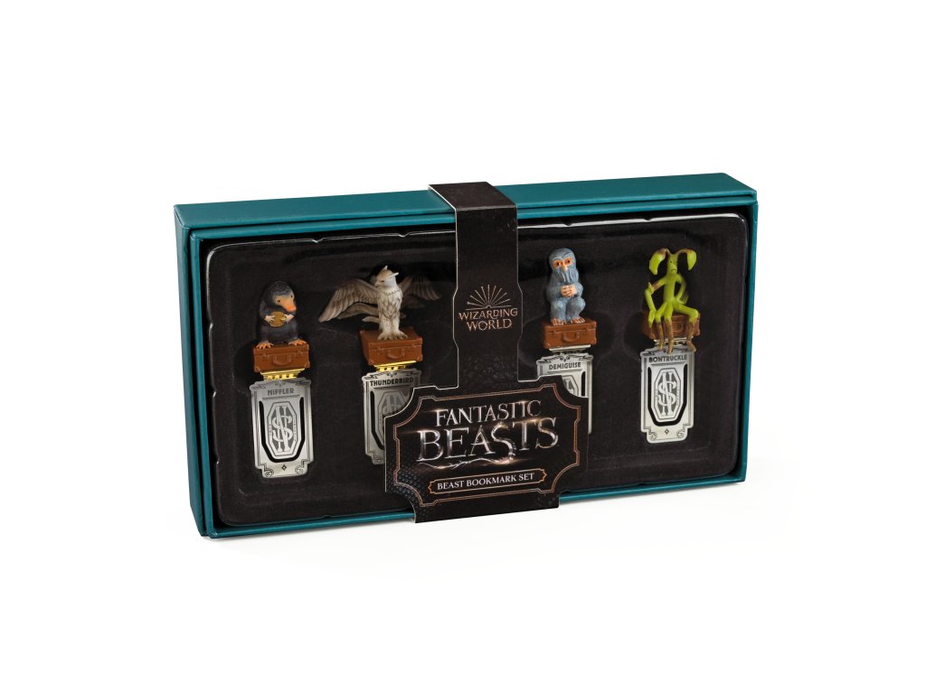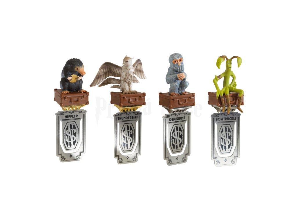 Každá ze čtyř záložek v této sadě má detailní, ručně malovanou postavičku z Fantastických zvířat, která je uložena v krásné sběratelské krabičce. Záložky měří přibližně 7,5 cm na výšku. Sada obsahuje Hrabáka, Kůroleza, Polovida a Bouřliváka (Niffler, Bowtruckle, Demiguise, Thunderbird).