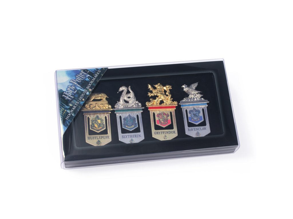 S touto sadou postříbřených a 24karátově pozlacených záložek do knihy s motivem Harryho Pottera v černém pouzdře nikdy neztratíte, kde jste přestali číst. A také se nemusíte bát, že nebudete mít dostatek záložek pro hromady napůl přečtených knih – v sadě jsou čtyři záložky s motivem jedné z bradavických školních kolejí - Havraspár, Mrzimor, Nebelvír a Zmijozel.