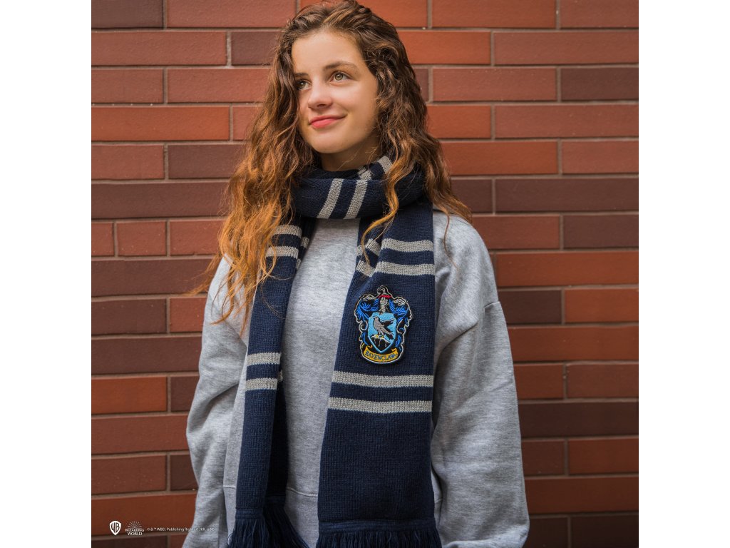 Čeká vás dlouhá zima? Nebo se chcete jen obléknout jako havraspárský student? Tato šála se hodí jak ke kostýmu, tak i do každodenního života. Tato ultrajemná luxusní šála vás ochrání před chladem a ukáže, jak jste hrdí na nebelvírské barvy! Ve srovnání s klasickou šálou je luxusní edice delší, silnější, má větší nebelvírský znak a sametové ramínko.