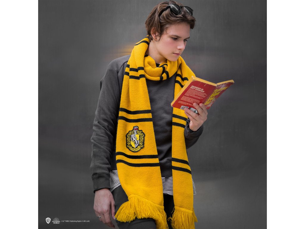 Čeká vás dlouhá zima? Nebo se chcete jen obléknout jako mrzimorský student? Tato šála se hodí jak ke kostýmu, tak i do každodenního života. Tato ultrajemná luxusní šála vás ochrání před chladem a ukáže, jak jste hrdí na nebelvírské barvy! Ve srovnání s klasickou šálou je luxusní edice delší, silnější, má větší nebelvírský znak a sametové ramínko.
