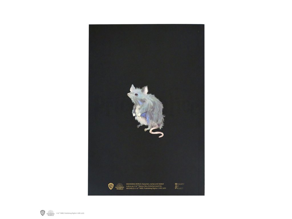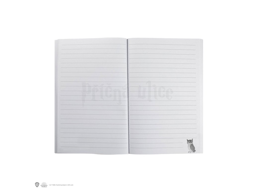 Linkovaný zápisník s postavou ze světa Harryho Pottera. 120 stran, na každé stránce je v rohu obrázek předmětu spojeného s postavou.