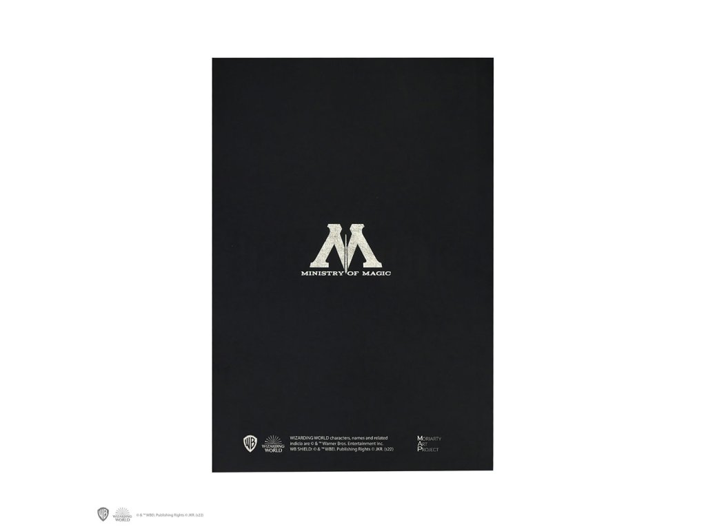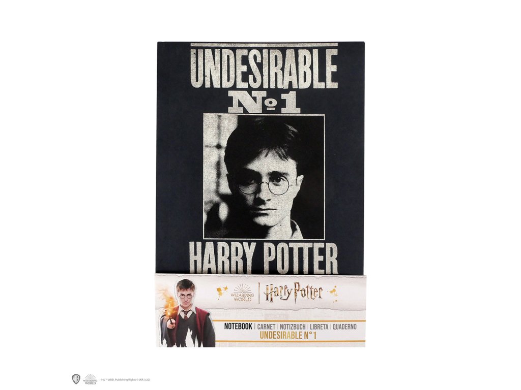 Linkovaný zápisník s postavou ze světa Harryho Pottera. 120 stran, na každé stránce je v rohu obrázek předmětu spojeného s postavou.
