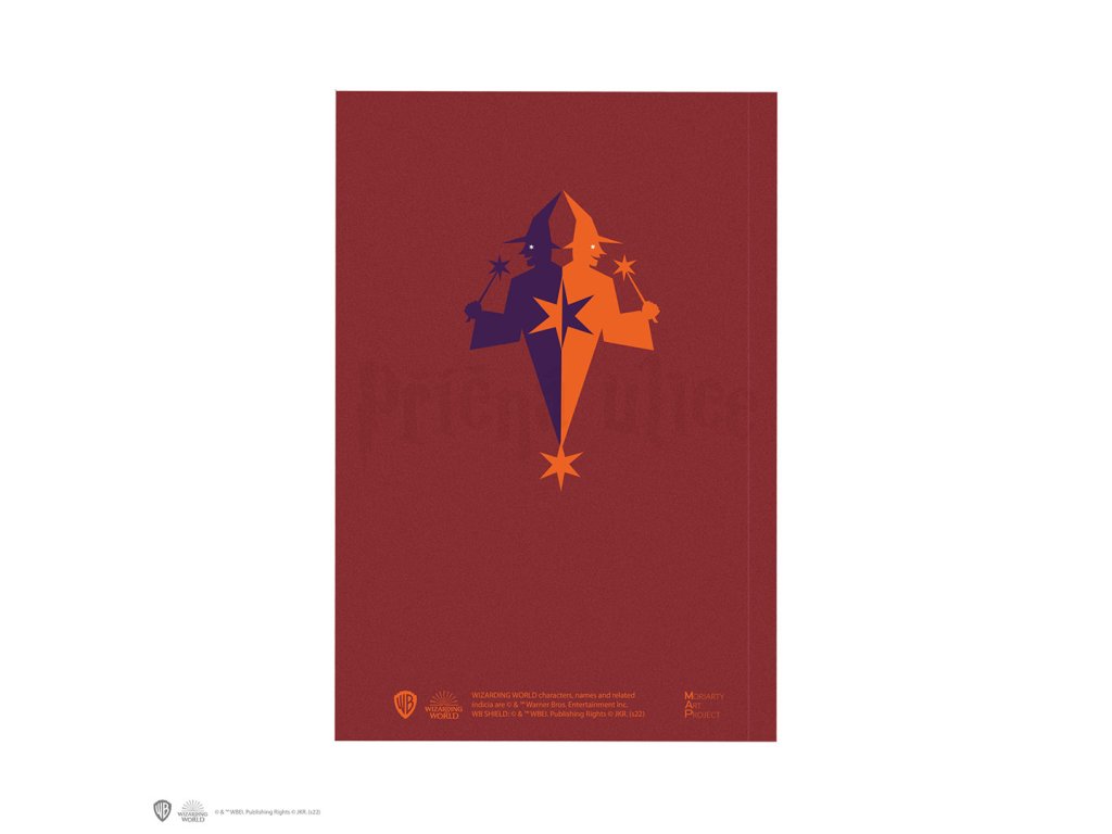 Linkovaný zápisník s postavou ze světa Harryho Pottera. 120 stran, na každé stránce je v rohu obrázek předmětu spojeného s postavou.