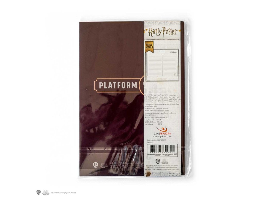 Linkovaný zápisník s postavou ze světa Harryho Pottera. 120 stran, na každé stránce je v rohu obrázek předmětu spojeného s postavou.