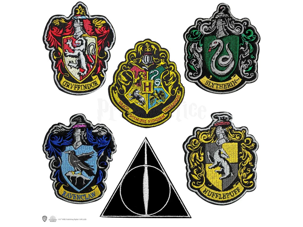 Tato exkluzivní kolekce zahrnuje šest kvalitních nažehlovaček/nášivek inspirovaných světem Harryho Pottera. Čtyři nášivky představují emblémy slavných bradavických kolejí - statečný Nebelvír, moudrý Havraspár, lstivý Zmijozel a věrný Mrzimo. Saeetetda je doplněna oficiálním znakem Bradavické školy čar a 1 cm) a mystickým symbolem Relikvií srech 9 × 8 cm. Všechny nášivky jsou vyrobeny z vysoce kvalitní bavlny a jsou ideální pro ozdobení oblečení, tašek nebo jiných textilních předmětů pro všechny fanoušky kouzelného světa.