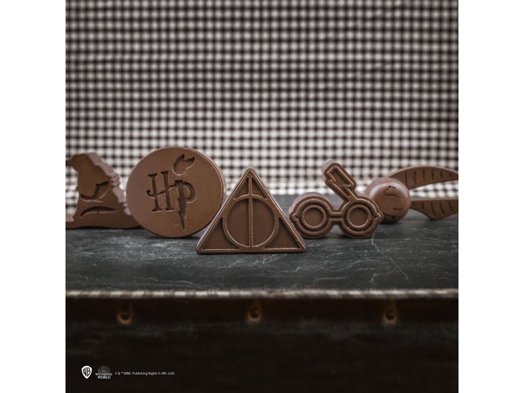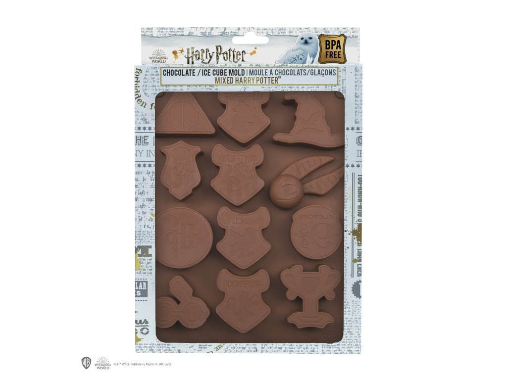 Pokud máte chuť na osvěžující nápoj nebo sladkou čokoládu, můžete si teď vyrobit ledovou kostku nebo čokoládu s motivem svých oblíbených symbolů. Užijte si kousek magie ze světa Harryho Pottera.