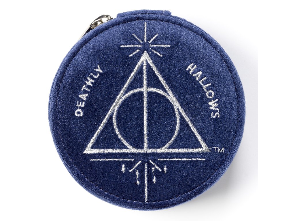 Ukládejte své nejcennější drobnosti v pravém kouzelnickém stylu! Tato oficiálně licencovaná sametová šperkovnice s motivem Harryho Pottera je nepostradatelným doplňkem pro každého oddaného fanouška. Dominantou víka je nádherně vyšívaný symbol Relikvií smrti, který šperkovnici dodává nádech tajemna a luxusu. Vnitřek je promyšleně rozdělen na speciální přihrádky pro prsteny, náhrdelníky a náušnice, díky čemuž zůstanou vaše poklady přehledně uspořádané.