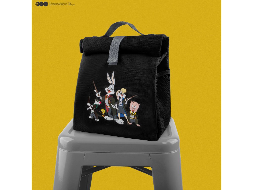 Při příležitosti 100. výročí studií Warner Bros objevte nové a limitované svačinové tašky. Tuto taška zdobí postavy z Looney Tunes v Bradavicích. Izolovaná taška udrží váš oběd teplý nebo studený a díky praktickému držadlu se snadno přenáší.